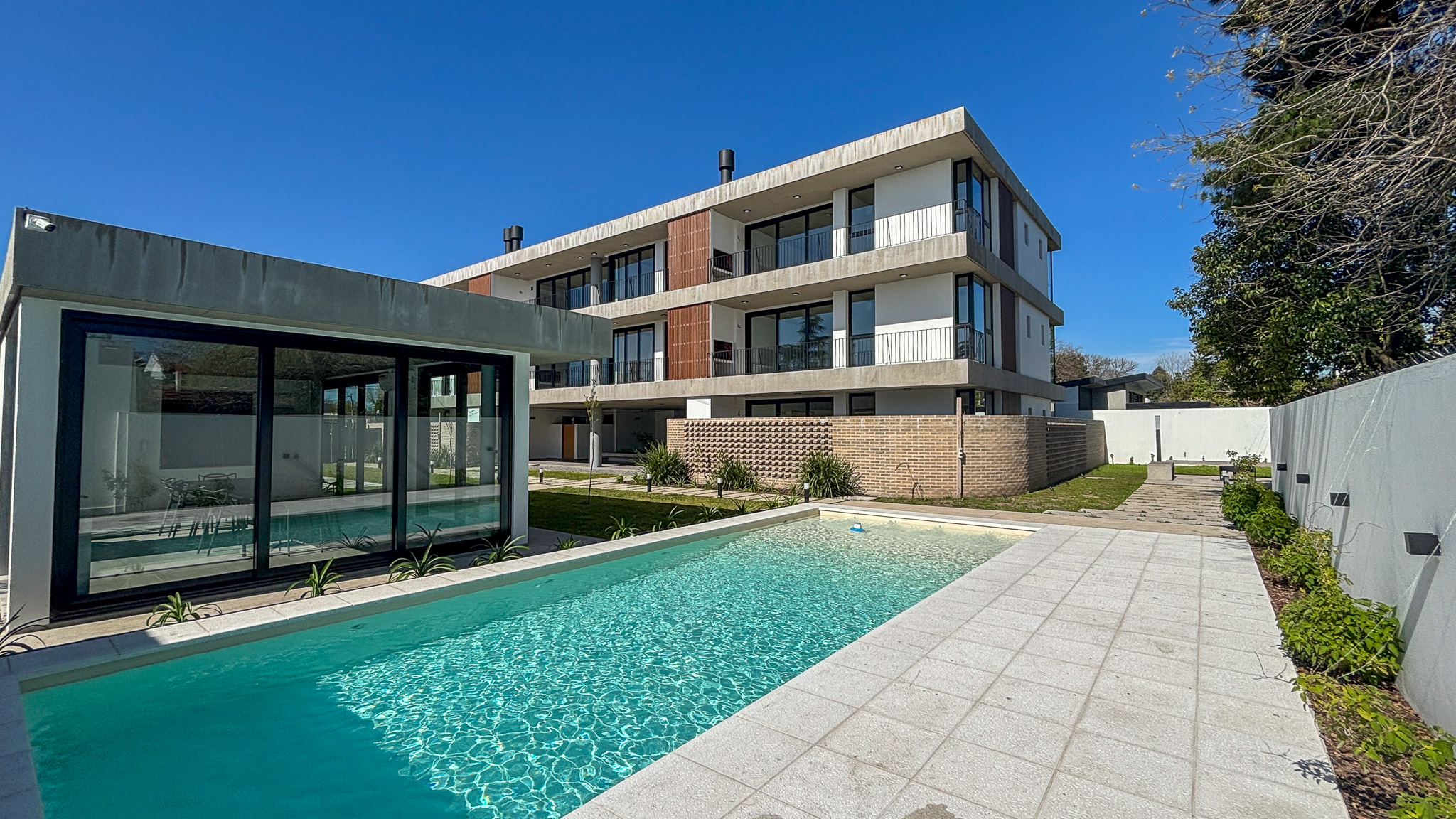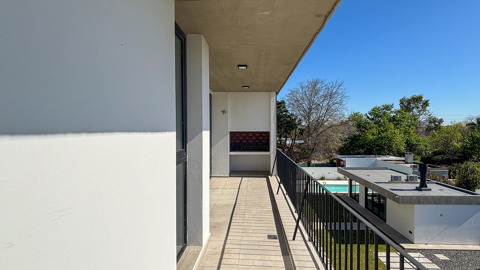 El conjunto se desarrolla en planta baja y dos pisos, con ascensor, pileta, espacios comunes de categoría que garantizan confort y seguridad. La unidad ofrece dos dormitorios, uno de ellos con vestidor, un amplio y luminoso living comedor con salida al balcón, cocina equipada con barra desayunadora, calefacción por radiadores, conexión para aire acondicionado, parrilla propia y cochera.